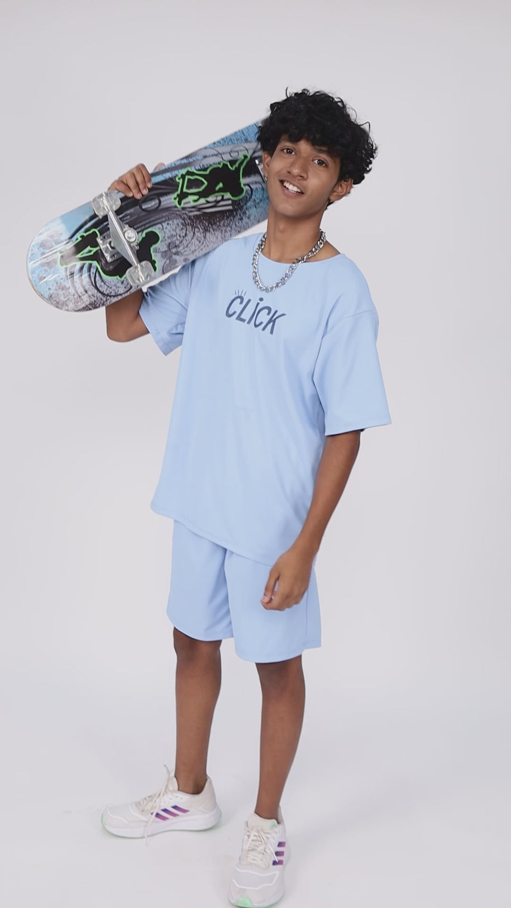 Opt for perfect sporty look with this Oversize Co-ord set from TeenTrums. The Quirky and vibrant print  adds to its appeal. Exuding short sleeves, it is sure to fetch you compliments from all. The printed pattern makes it a captivating choice.