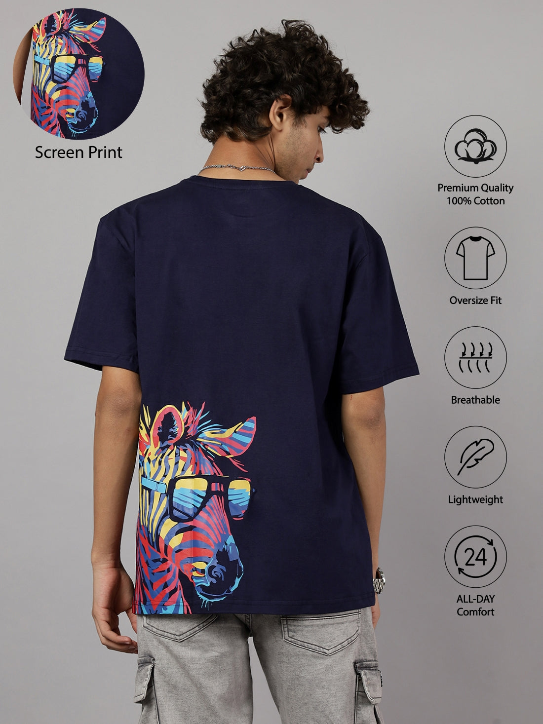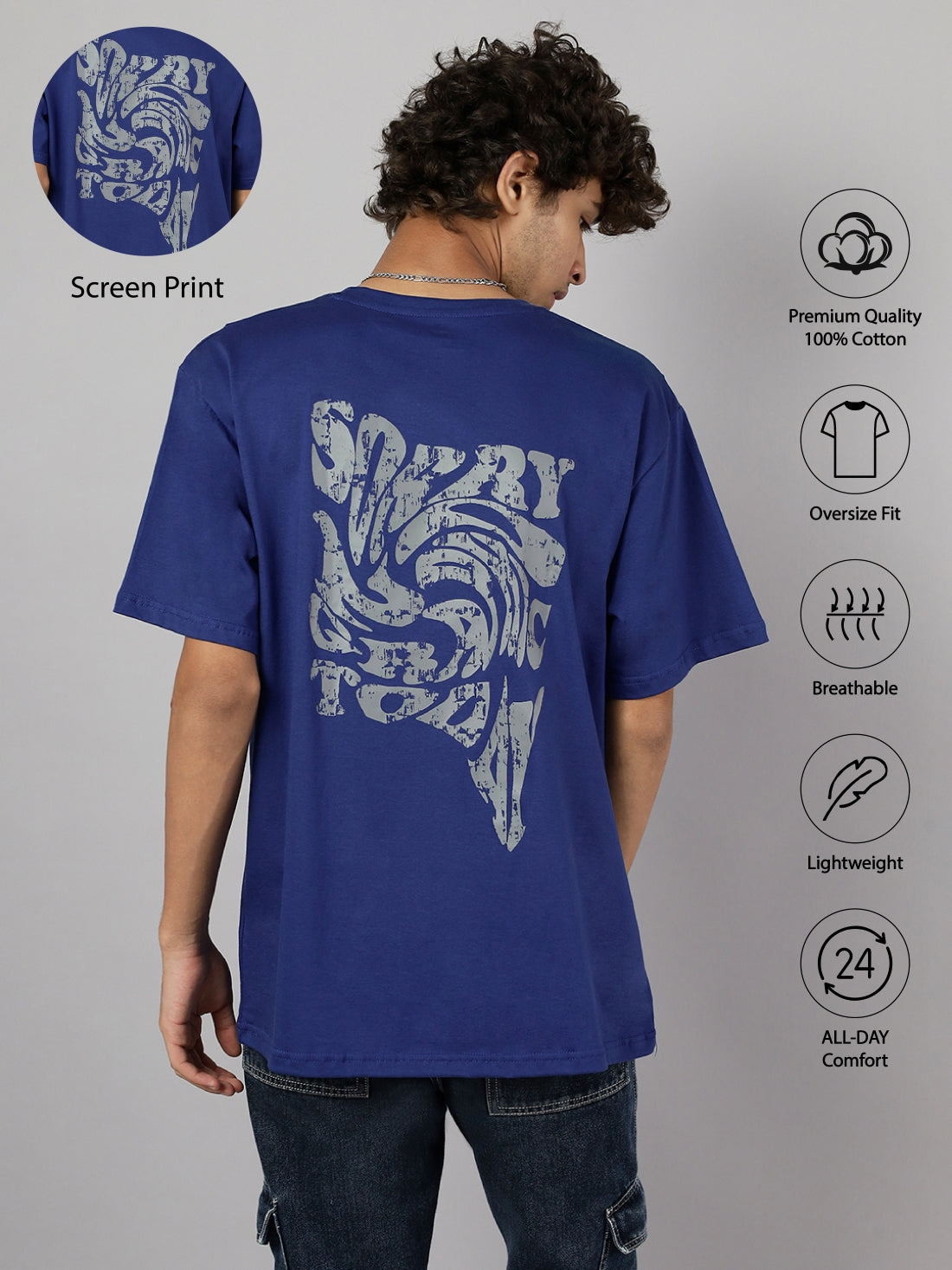 Boys Street Style Graphic Oversized Tshirt - Royal Blue