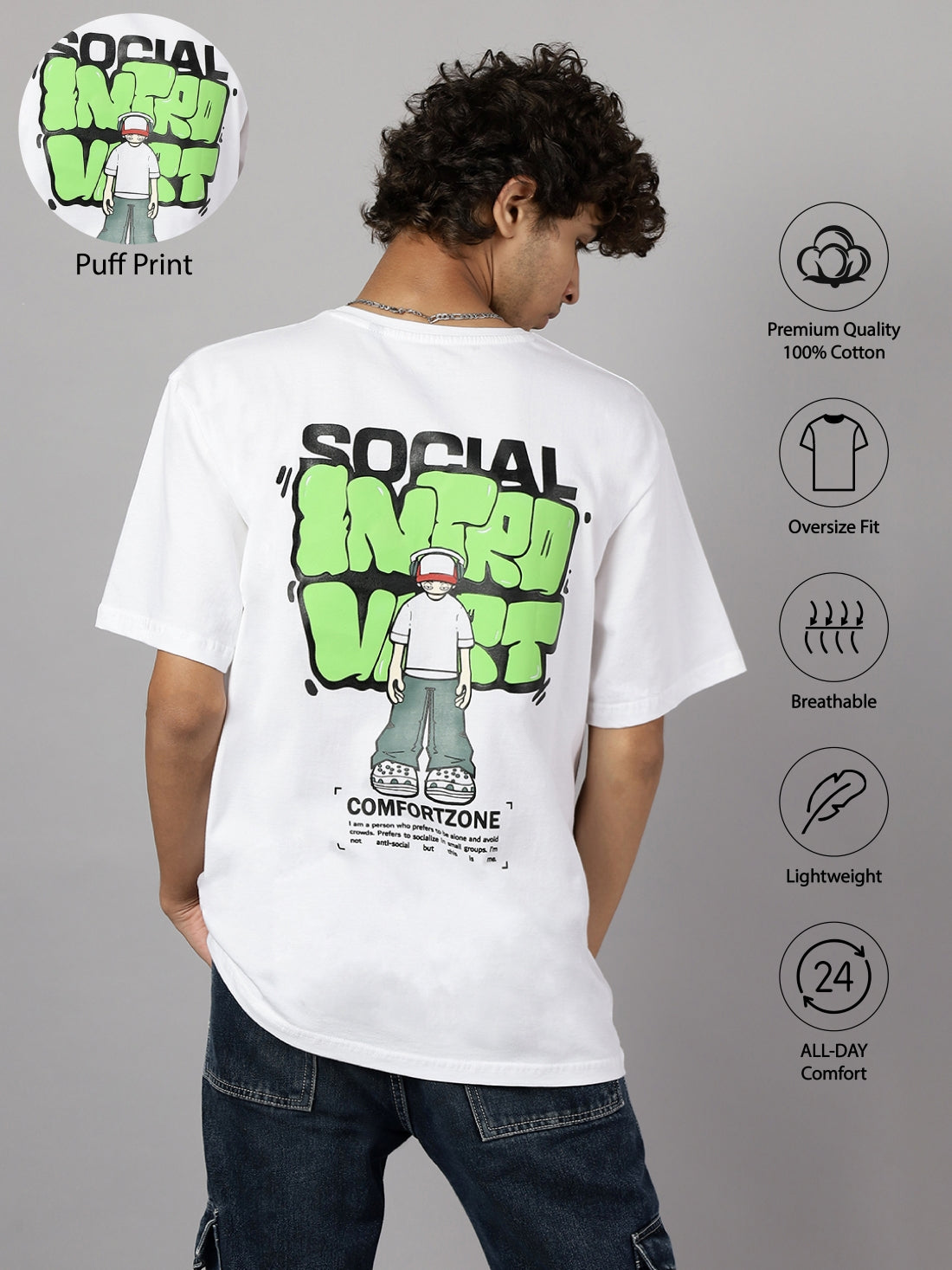 Boys Introvert Graphic Oversized Tshirt - White