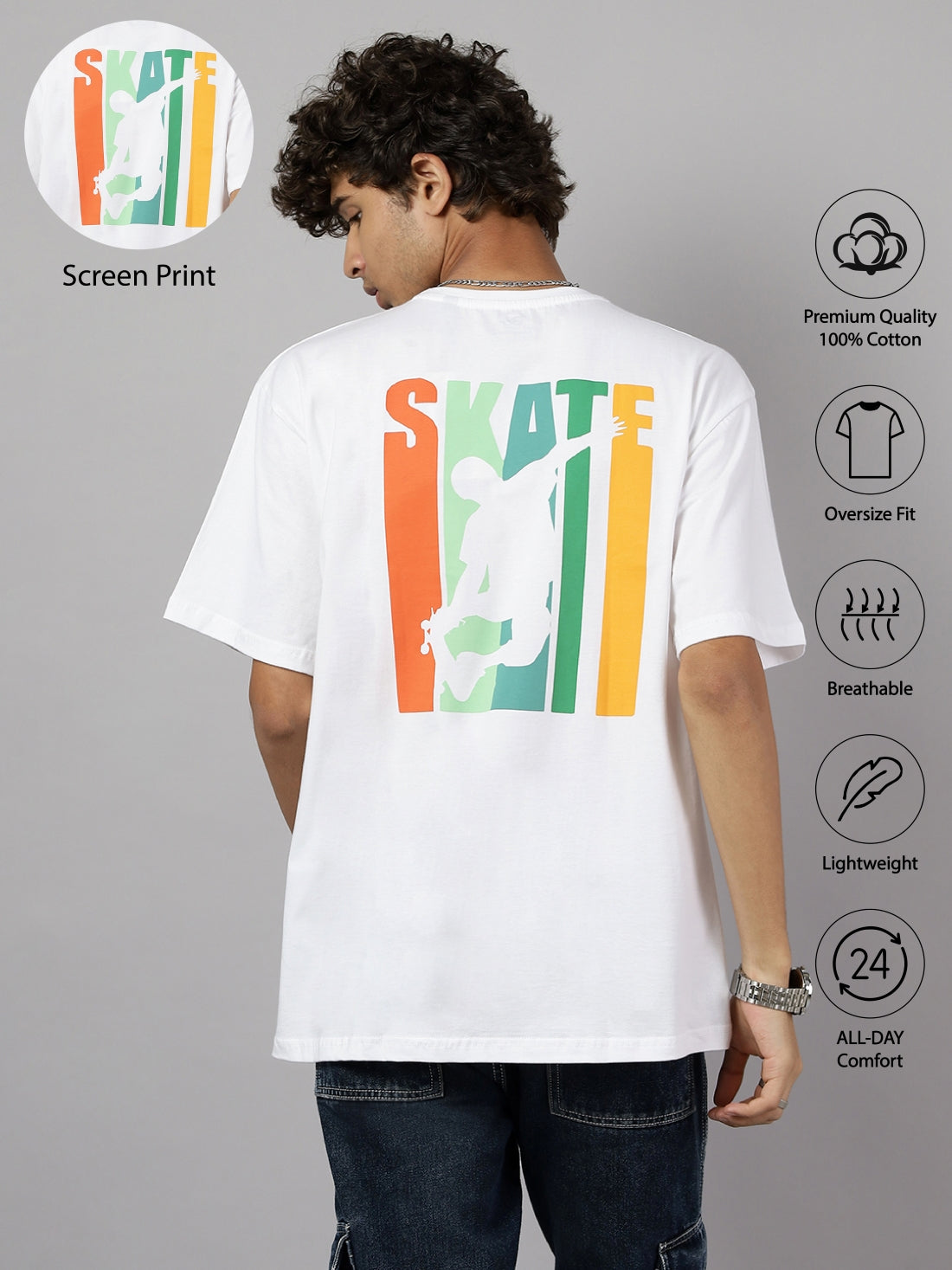 Boys Urban Skate Graphic Oversized Tshirt - White