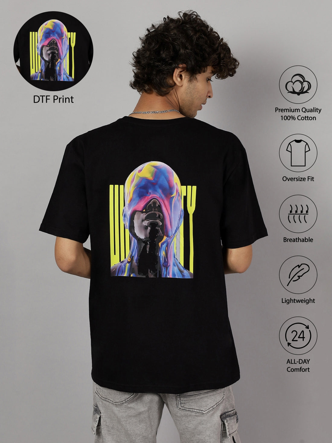 Minimalistic Print Oversized Shirt-Black