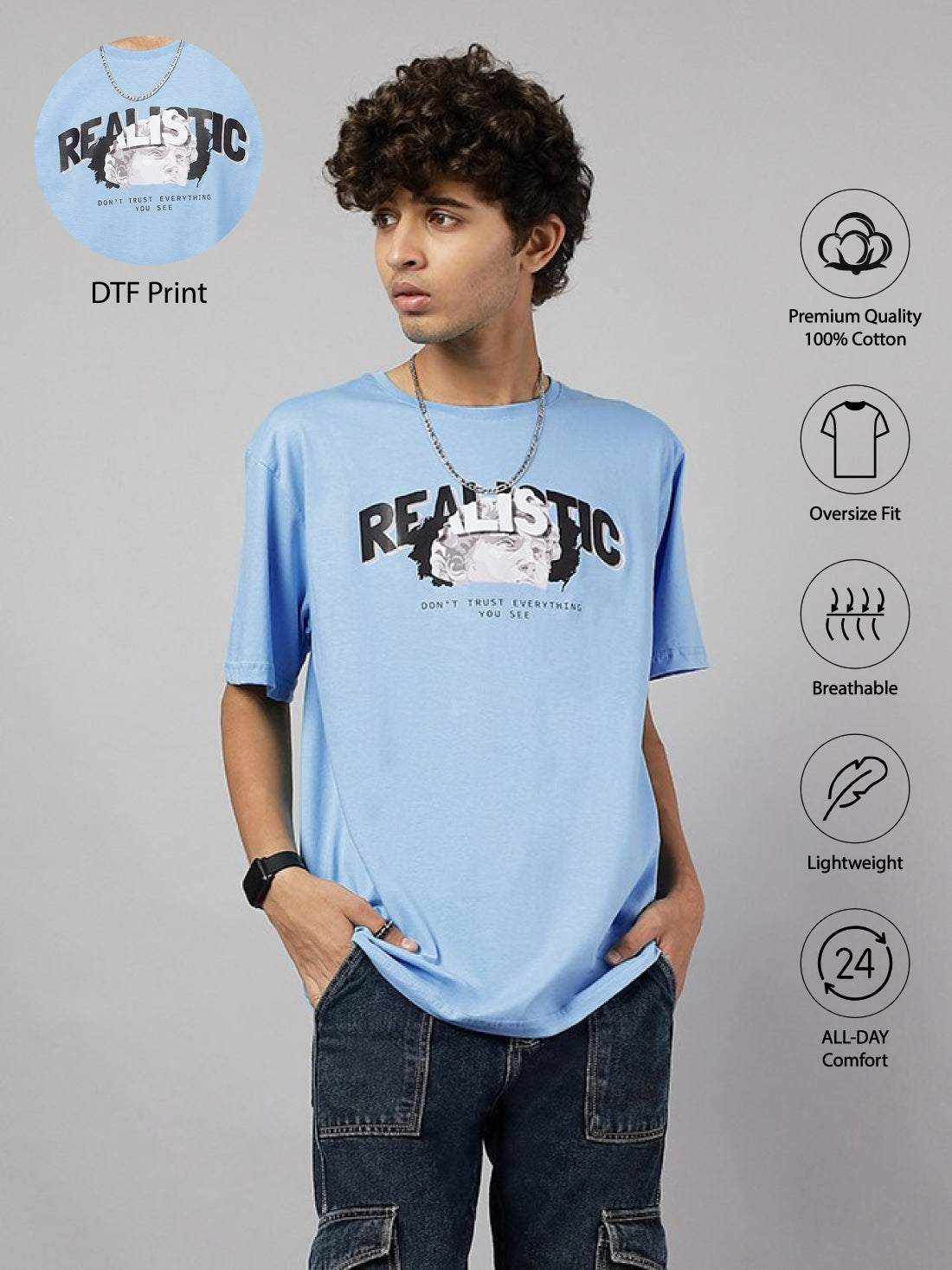 Boys Street Realistic Graphic Oversized Tshirt - Light Blue