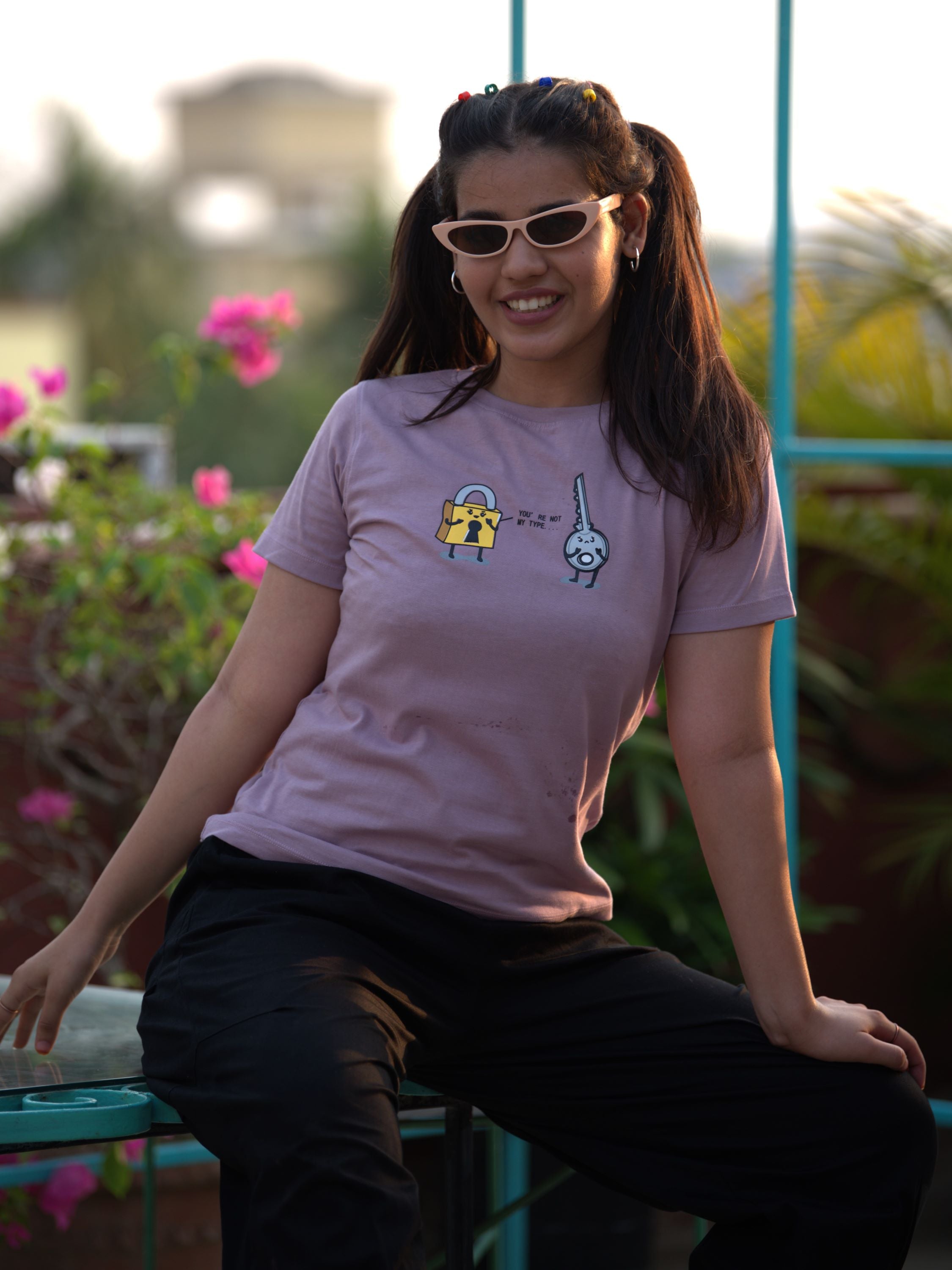 graphic T-shirt lock & key- Lilac