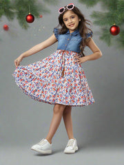 Elevate your kid’s style with this red denim dress for girls from Ishki Pushki. This stylish cotton dress offers timeless appeal with its classic denim fabric and playful fit and flare design. Perfect for any season, the dress is both durable and breathable, making it ideal for everyday adventures, playdates, or casual outings. Whether you're looking for a casual dress for girls, a stylish frock, or a comfortable cotton dress, this piece blends fashion and function effortlessly..